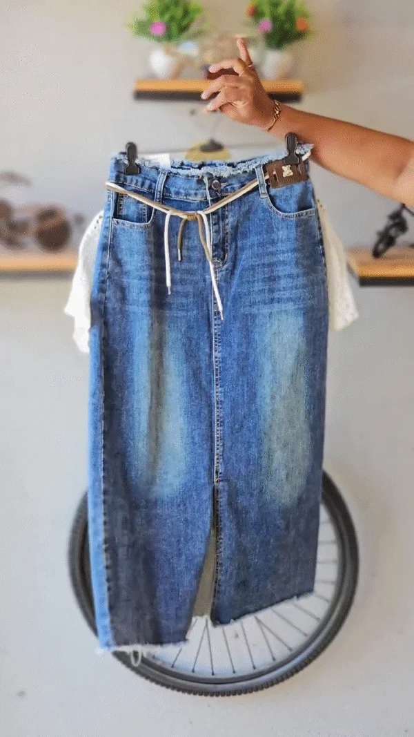 Handcrafted Charm: Crochet Crop Top & Denim Skirt Set – Breezy, Boho, Beautiful